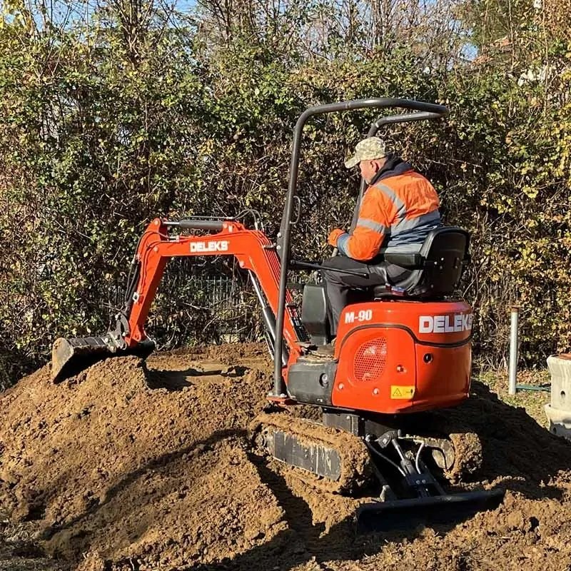 La mini-pelle Deleks M90 est une machine compacte et robuste, pensée aussi bien pour les particuliers exigeants que pour les professionnels.