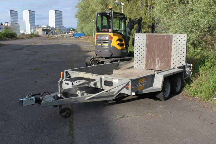 Mini-pelle Volvo ECR25D (2020), compacte et maniable avec déport arrière réduit, équipée d’un tiltrotateur Engcon, livrée avec remorque et 3 godets, très faible nombre d’heures, prête à l’emploi.