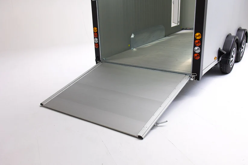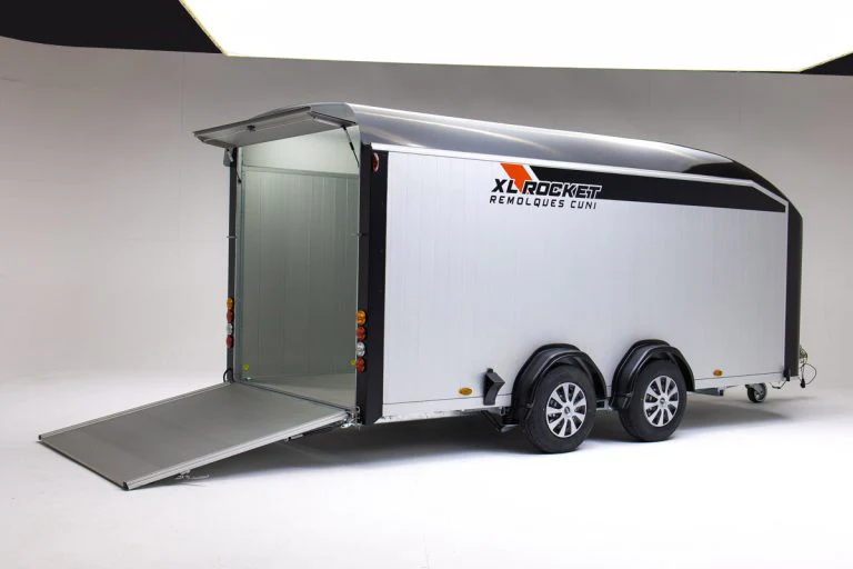 Remorque fourgon haut de gamme, conçue avec des matériaux premium : fibre de verre monocoque et aluminium aérodynamique. Idéale pour le transport sécurisé de véhicules, équipements ou marchandises volumineuses, elle combine grande capacité, robustesse et design moderne.