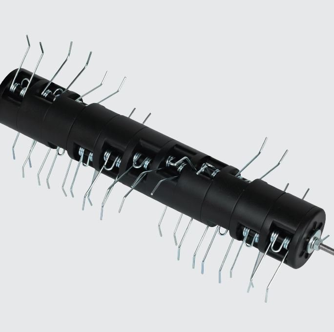 La profondeur de travail se règle facilement de façon centralisée, avec 6 niveaux allant de –10 mm à +5 mm, afin de s’adapter à l’état et à la saison de votre pelouse. Le rouleau scarificateur équipé de 16 couteaux en acier assure un travail précis, tandis que le rouleau démousseur à 22 dents en acier garantit une aération efficace.
