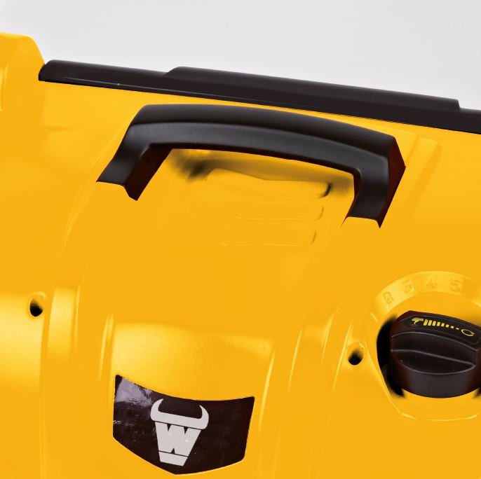 Le bac de ramassage de 55 litres permet de travailler plus longtemps sans interruption. Le guidon pliable avec déverrouillage rapide facilite le rangement et réduit l’encombrement, tandis que la poignée de transport intégrée assure une manipulation aisée.