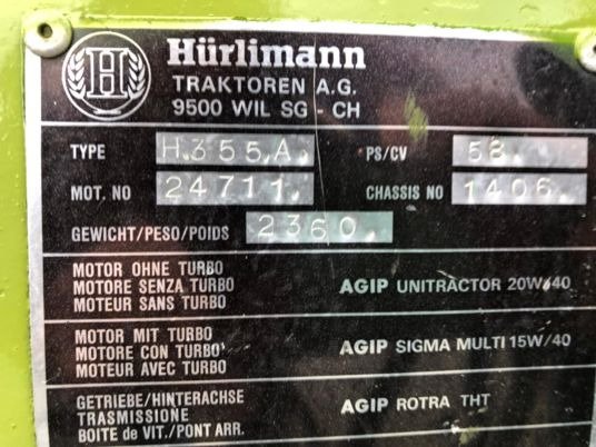 Tracteur Hürlimann H355 avec arceau – Chargeur frontal en option (1986)